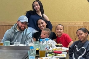 体育资讯10月8日讯 美媒Courtside Buzz报道,他们转发了一则库里一家六口在外聚餐的温馨合照。