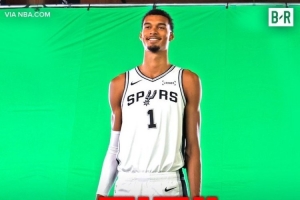 体育资讯10月9日讯 马刺官方公布了球员新赛季的资料,其中文班亚马的最新身高来到了7英尺5英寸(2米26),而上赛季他的身高是7英尺3英寸(2米21)。