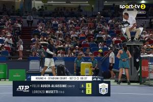 视频中可以很清楚的听到,在第二盘穆塞蒂2-5面对对手的发球胜赛局时,穆塞蒂向裁判抱怨:“在tm每一分都这样,每一分。我需要你们理解,我确实做错了事,但他们不能每分都这样(咳嗽)。”