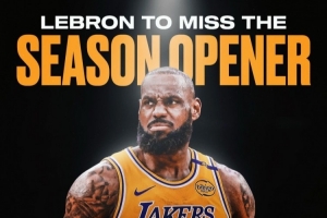这也是詹姆斯生涯首次缺席常规赛揭幕战,此前他已经连续出战22次。