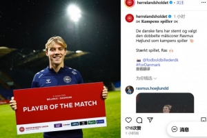 体育资讯10月10日讯 丹麦国家队官方宣布,霍伊伦当选6-0白俄罗斯的球迷票选最佳球员。