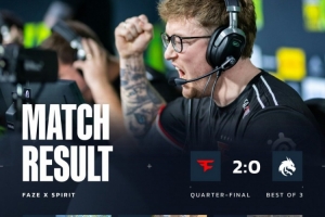易边再战,手枪局FaZe全员来B,寒王与总监各取双杀,FaZe拿到第11分。次回合Spirit强起守住B点,donk拿到AK第15回合双杀,Spirit将比分追至11-5。回到长枪,FaZe三颗烟雾弹强打A点得手,donk拆包未果,FaZe拿到赛点。最终donk与Sh1ro先送首杀,FaZe轻松13-5拿下图二淘汰Spirit,晋级半决赛。