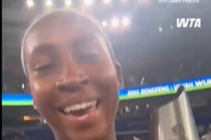 体育资讯10月12日讯 在夺得武汉网球公开赛冠军后,高芙录制视频,感谢中国球迷。