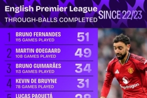 体育资讯10月13日讯 根据数据机构Squawka的统计,自2022/23赛季以来,B费在英超联赛中以115场比赛完成51次成功直塞的数据高居榜首。厄德高以108场比赛送出49次直塞的成绩紧随其后,位列第二。