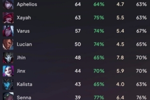 体育资讯10月14日讯 数据网站统计Gumayusi生涯英雄:厄斐琉斯场次最多,卡莎胜率仅36%。