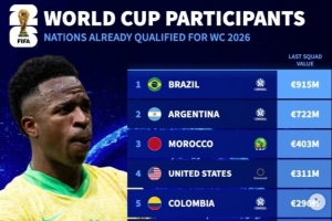 附已锁定世界杯资格球队身价榜(最新一期大名单):