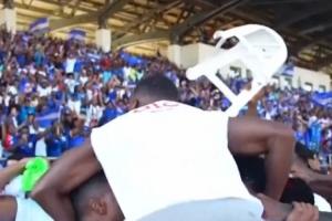 埃朱马禁区前沿停球后原地摆腿,推射命中立柱