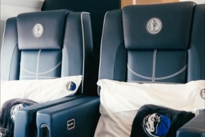 其中飞机的升降梯加上了独行侠的Logo,飞机上的地毯、座椅进行了升级,然后多处细节都加上了独行侠的Logo点缀。