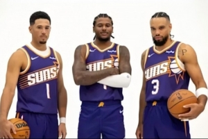 上上季太阳有布克、格雷森·阿伦、比尔和埃里克·戈登四个2号位,中锋是努基奇和206公分的尤班克斯。