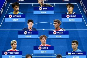 前锋:孙兴慜(2000万欧)、三笘薰(4000万欧)、久保建英(3000万欧)