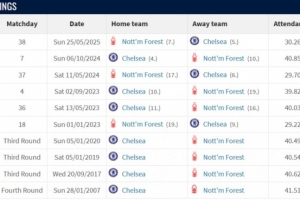 体育资讯10月18日讯 英超第8轮,切尔西客场对阵诺丁汉森林。双方近10次交手,切尔西6胜3平1负,进20球失8球。