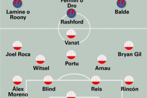 前锋:亚马尔/巴德吉、拉什福德、巴尔德