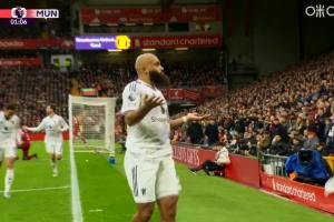 体育资讯10月19日讯 英超第8轮利物浦vs曼联,曼联先进一球,1-0领先利物浦。