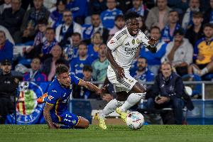 第84分钟,桑克里斯绊倒维尼修斯,吃到第二张黄牌被罚下,赫塔费只剩九人作战。