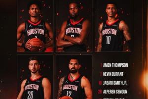 火箭主教练乌度卡今日接受采访时透露了火箭揭幕战的首发阵容,他表示球队将沿用季前赛时使用过的双塔阵容,首发五人具体为: