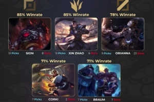 体育资讯10月22日讯 外媒统计S15全球总决赛至今为止各位置胜率最高英雄,具体如下: