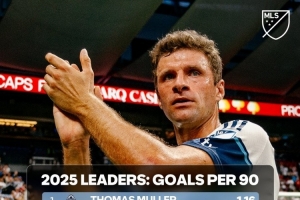 体育资讯10月22日讯 美职联官方统计了球员本赛季每90分钟的进球数量,并列出榜单,穆勒居首,梅西次席。