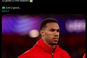 阿森纳官推也统计了后者的数据:“222次出场!22球(本赛季2球)!‘二’真秀!”