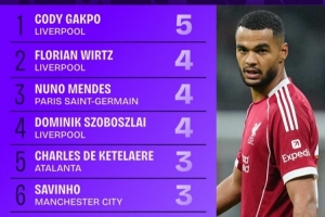 体育资讯10月23日讯 本赛季欧冠联赛阶段已战罢3轮,Squawka统计了到目前为止创造绝佳机会榜单,加克波5次第一,维尔茨等3人4次分列二至四位。