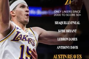 2000年后湖人队史50+仅5人:奥尼尔、科比、詹姆斯、浓眉、里夫斯
