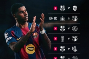 欧冠联赛阶段第1轮,巴萨2-1纽卡,拉什福德梅开二度