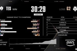 体育资讯10月30日讯 S15八强TES首局击败G2,JKL韦鲁斯首局打出了38.9W的伤害。