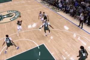 GIF-追梦脸助库里但无效 自己也返回更衣室