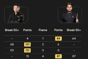 本场比赛,周跃龙轰出两杆破百和两杆50+,桑卡姆打出五杆50+。双方前八局比赛打成4-4平,最后桑卡姆连胜两局拿下比赛胜利。