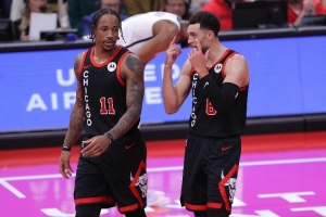 帕金斯表示:“这支公牛队真的不错,多诺万是了不起的教练,而且你猜怎么着,更衣室里让人分心的拉文、德罗赞已经走了。现在他们有6个球员场均得分上双,这就能看出这支球队很团结。”