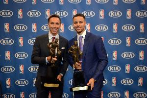 库里:“第一次在场上见到纳什,我一直在场边注视着你的一举一动。但从小我就知道自己是个传球优先的控卫。我爸为此还特意要求过我。你现在给戴尔-库里打电话,他肯定还会告诉你,他当年不得不逼我投篮,因为在我们家‘这绝对不行,你不能只传球不投篮’。但我始终痴迷于那种创造力,感觉我们体型相似,作为控卫能在长人丛中穿梭,把球送到该去的地方。你总能看到匪夷所思的传球角度,变速能力让你掌控全场节奏,让每个人都参与进攻——这种打法充满乐趣,正是我向往的篮球方式。”