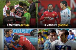 苏亚雷斯生涯还曾因三次咬人被禁赛,2013年因为咬伊万诺维奇被禁赛10场,还因为咬巴卡尔被禁赛7场,2014年因咬基耶利尼被禁赛四个月。