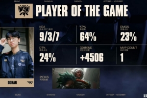 体育资讯11月9日讯 S15总决赛T1拿下第一局,Doran获得mvp,媒体人王玮晨写道: