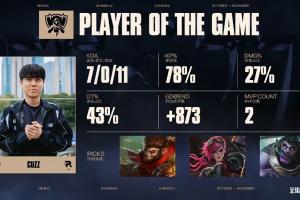 体育资讯11月09日讯 Cuzz拿下S15总决赛第三局MVP,总数据7-0-11,参团78%,承伤占比43%!