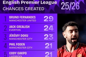 体育资讯11月11日讯 英超联赛已经进行了11轮,squakwa也统计了本赛季英超创造机会情况,B费力压格拉利什居首。