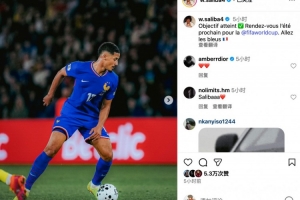 赛后,法国后卫萨利巴更新社媒晒照庆祝晋级世界杯,写道:目标达成✅明年夏天世界杯见。加油,法国队 🇫🇷