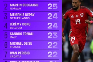 体育资讯11月20日讯 本届世欧预小组赛已经告一段落,squakwa也统计了本届赛事创造机会情况,多位名将在列。