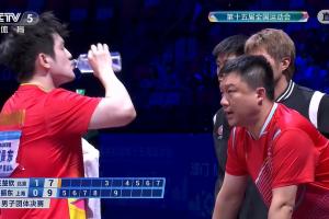 体育资讯11月20日讯 乒乓球男团决赛北京vs上海第二场,王楚钦vs樊振东进行到第二局时。