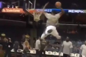 这球是真滴酷!奥比·托平反击胯下单臂暴扣!但先超时了!