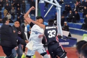 危险动作!AJ·约翰逊扑防麦克朗被认定垫脚 吹一级恶意犯规