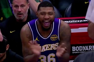 挺抽象!纽厄尔顺下空篮直接卡到篮脖子上
