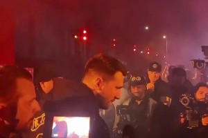 这…昨晚赛后李添荣欲与场边球迷击掌 遭北京主场工作人员拦截