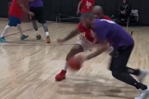 挺抽象!纽厄尔顺下空篮直接卡到篮脖子上