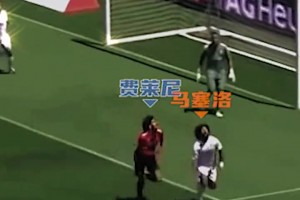邓弗里斯遭对手倒勾爆头痛苦倒地,缓了一下后继续比赛
