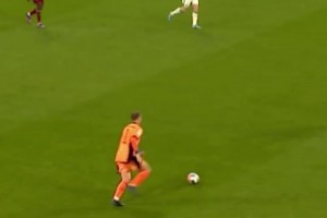 邓弗里斯遭对手倒勾爆头痛苦倒地,缓了一下后继续比赛