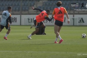 邓弗里斯遭对手倒勾爆头痛苦倒地,缓了一下后继续比赛