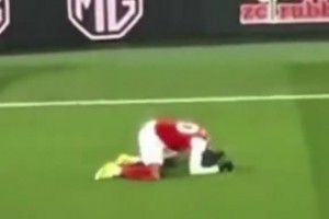 邓弗里斯遭对手倒勾爆头痛苦倒地,缓了一下后继续比赛