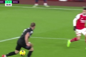 邓弗里斯遭对手倒勾爆头痛苦倒地,缓了一下后继续比赛