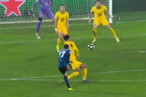 恰尔汗奥卢赛后与劳塔罗拥抱庆祝,并给后者戴上队长袖标