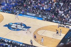 邓弗里斯遭对手倒勾爆头痛苦倒地,缓了一下后继续比赛