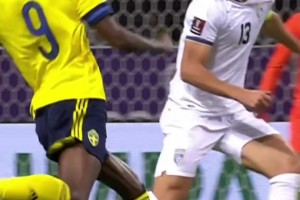 邓弗里斯遭对手倒勾爆头痛苦倒地,缓了一下后继续比赛